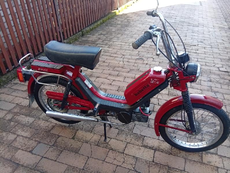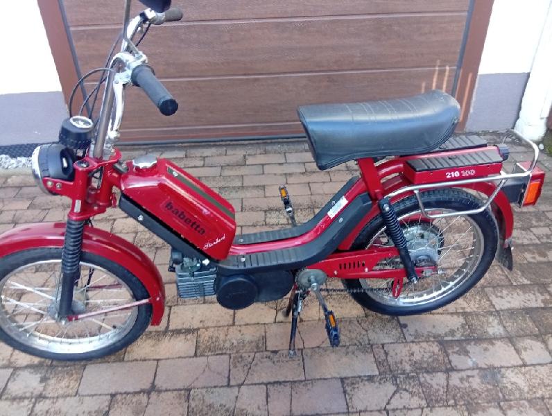 rodám Babeta 210 vínové barvy, ve velice pěkném stavu. Výměny tyto díly: výbrus, ložiska a gufera, volnoběžka, řetězové kolečko, těžké spojky, startovací čelisti, benzínový kohout, přední a zadní lanko, ložiska kol, rozeta, brzdové čelisti, šlapací řetěz, sekundární řetěz, pláště, duše, kliky a šlapky. Více informací pouze na telefon, na email a SMS nereagují.